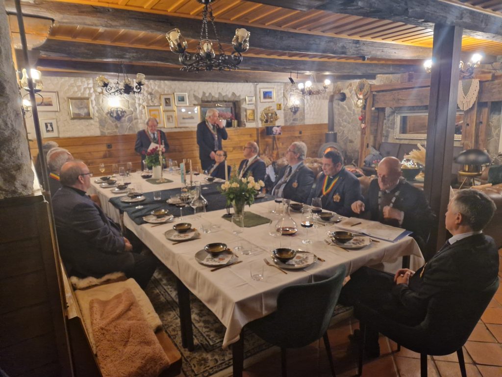 Nato je sledilo prijetno viteško druženje. Za dobro »martinovsko« razpoloženje je poskrbela družina Kobal. Na mizo so prihajale izbrane jedi, ki jih je pripravila soproga Andreja, v družbi z letošnjim viteškim vinom (modra frankinja Kobal, letnik 2019). Ker smo morali pokušati še druga Kobalova vina (nazdraviti smo morali svetemu Martinu in seveda tudi nam), se je druženje končalo v prijetnem razpoloženju.